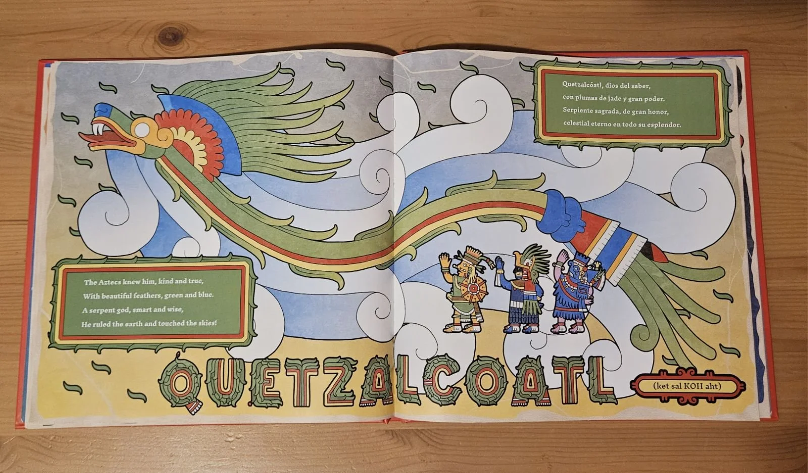 YVONNE TAPIA: I love to hear it! It’s essential to remember our roots and a lot of the vocabulary we use today originates from Nahuatl culture, like “chocolate” (xocolatl or chocolatl) and “elote” (elotl). You also include historical Aztec Gods, the artwork being so detailed, from the legendary feathered serpent, Quetzalcoatl to Huitzilopochtli. It’s beautiful! Each god represents something unique and connected to nature.
