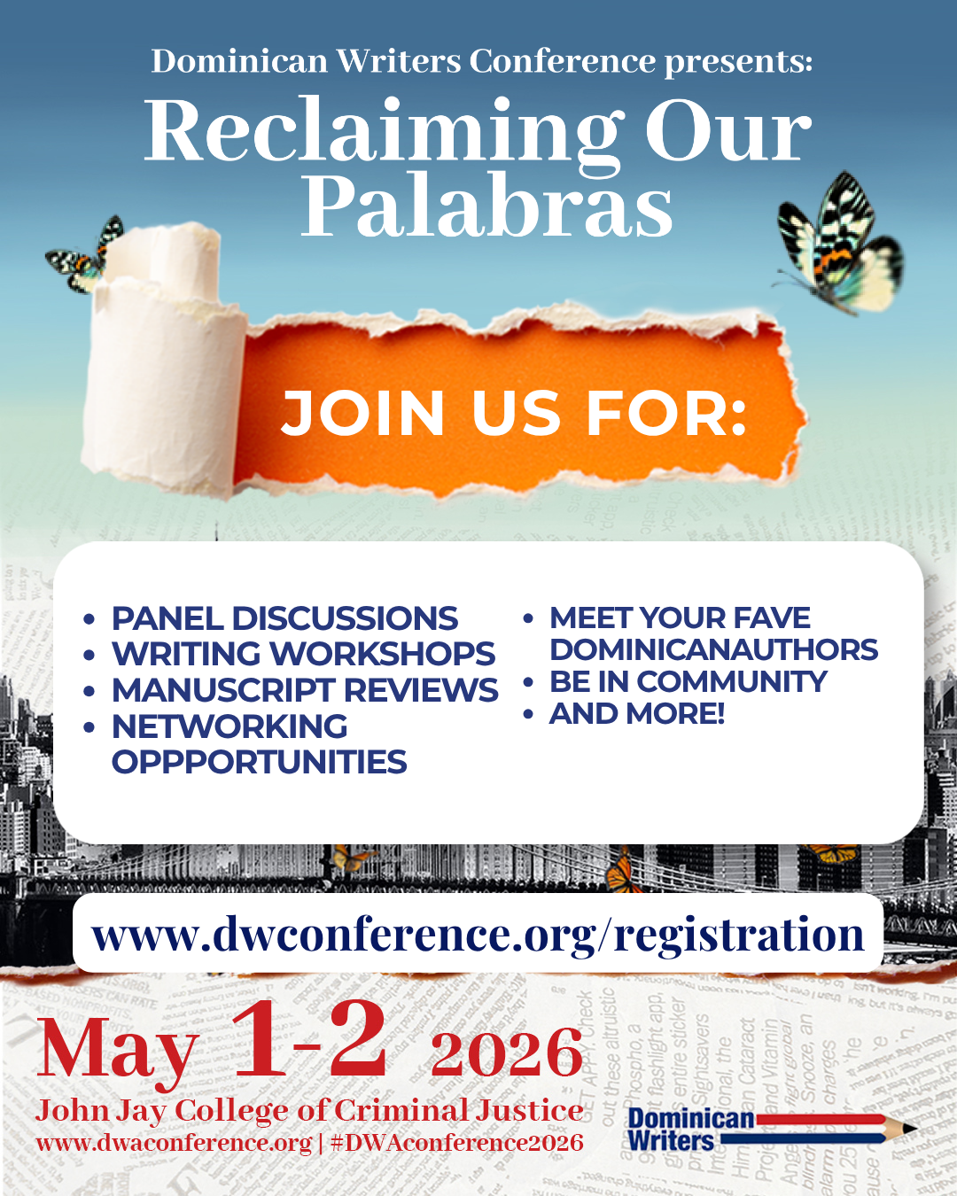 This year’s conference builds on that legacy while honoring the path Julia Alvarez helped make possible. Over two days, writers will gather for workshops, panels, keynote conversations, and manuscript reviews with editors and agents—engaging deeply with craft, publishing, language, identity, and creative sustainability.